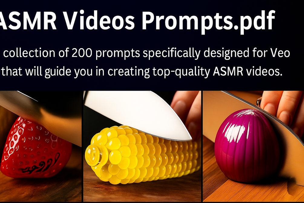 Unlock the next wave of viral content with 200 expertly crafted ASMR prompts designed exclusively for VEO3. These prompts focus on the trending glass food cutting niche โ€” where precision, sound, and surreal aesthetics meet. Whether you're a content creator, marketer, or ASMR enthusiast, this digital PDF gives you everything you need to start generating mesmerizing, high-retention videos with ease.